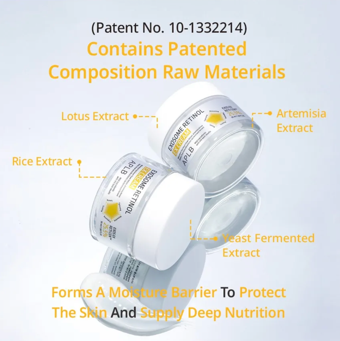 The APLB Exosome Retinol EX Cream is an advanced anti-aging facial cream that combines retinol, exosomes, and Centella Asiatica extract for visibly firmer, smoother, and more youthful-looking skin. Its innovative EXOS EX RETI CEN™ complex (25.5%) enhances skin elasticity, reduces fine lines, and provides deep hydration.
