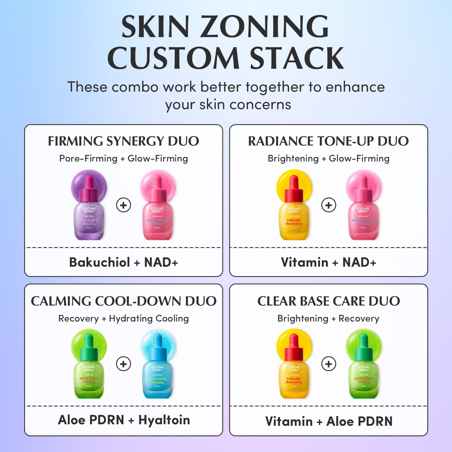 Με τις μικρές αλλά ισχυρές συσκευασίες του, το κιτ σου επιτρέπει να δοκιμάσεις όλη τη δύναμη των superfood complexes της EQQUALBERRY και να βρεις τον ιδανικό συνδυασμό για τη ρουτίνα σου, δημιουργώντας μια επιδερμίδα υγιή, φωτεινή και απόλυτα ισορροπημένη.