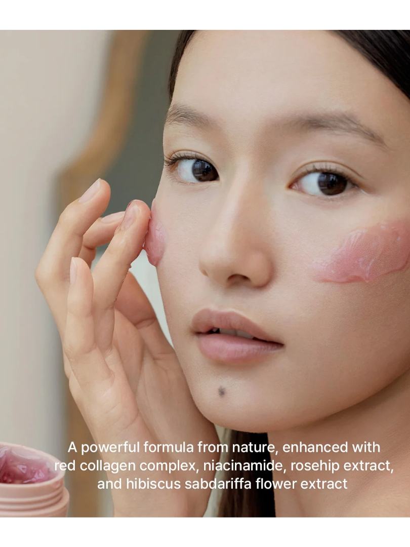 With 30% Red Collagen Complex, the Fresh Red Smoothie Serum delivers intensive care for firm, resilient skin. Rosehip extract, rich in vitamin C (60 times more than lemons), brightens and evens skin tone, while Hibiscus Sabdariffa flower extract acts as a powerful antioxidant. Niacinamide helps reduce pores and inflammation, leaving the skin clear and balanced.