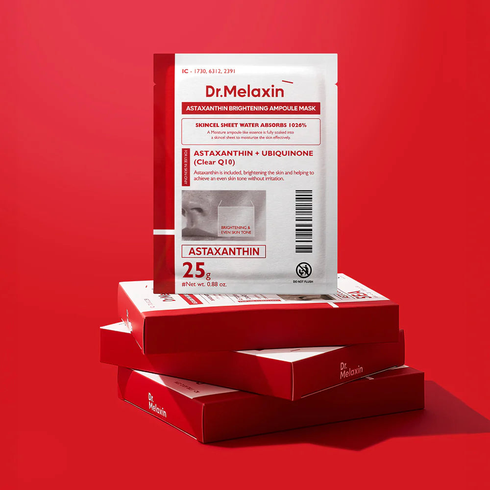 Αποκαλύψτε πιο λαμπερή, ομοιόμορφη και νεανική επιδερμίδα με τη Dr. Melaxin Astaxanthin Whitening Ampoule Mask Pack — μία εντατικά αντιοξειδωτική και λευκαντική μάσκα που ενισχύει τη λάμψη και βελτιώνει ορατά τον τόνο του δέρματος.