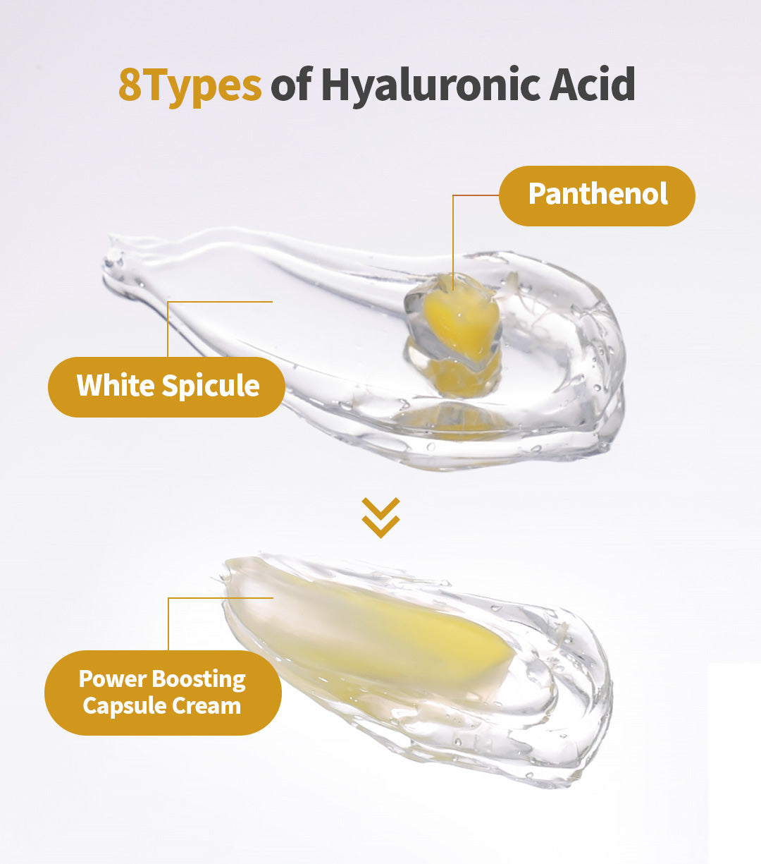 Η σύνθεση της κρέμας περιλαμβάνει οκτώ τύπους Υαλουρονικού Οξέος, Panthenol και White Spicule, για βαθιά ενυδάτωση και καλύτερη απορρόφηση των ενεργών συστατικών. Επιπλέον, ένα μείγμα εννέα τύπων Peptides, χαμηλού μοριακού βάρους Collagen 200DA και White Spicule συνεργάζονται για την αναζωογόνηση της επιδερμίδας, προσφέροντας υγιή και λαμπερή όψη.