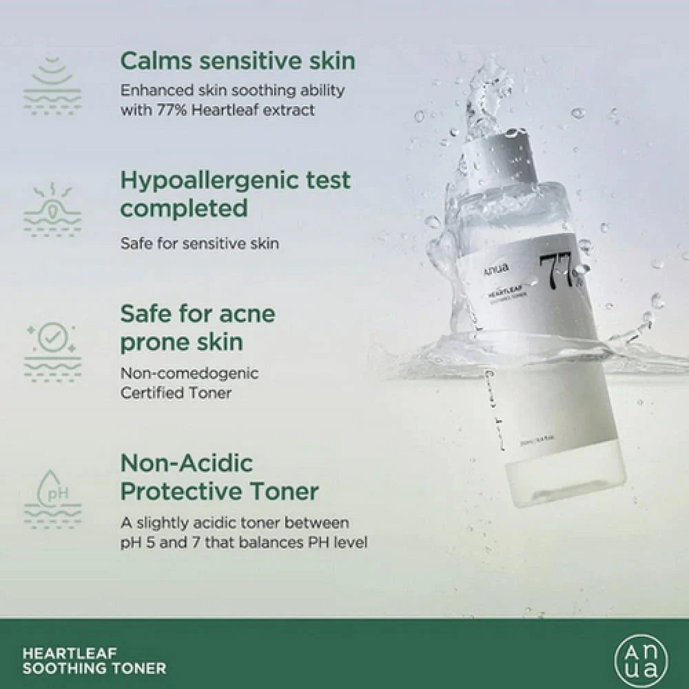Το Heartleaf 77% Soothing Toner είναι ένα φιλικό προς το δέρμα τόνερ προσώπου που έχει σχεδιαστεί για να αντιμετωπίζει αποτελεσματικά και να καταπραΰνει διάφορα προβλήματα του δέρματος.
