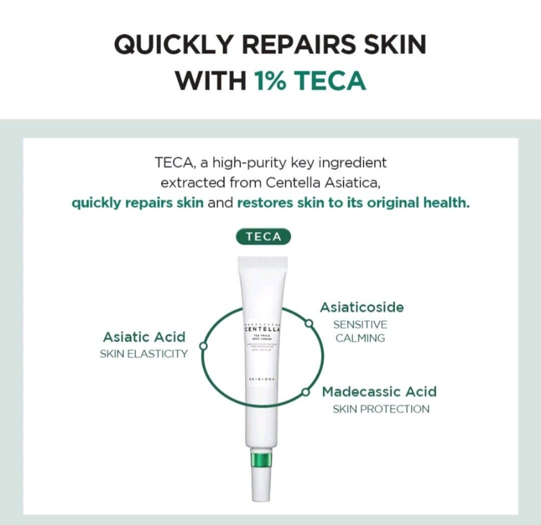 Η σύνθεσή της περιλαμβάνει 15% tea tree leaf water και 1% TECA complex (Asiaticoside, Asiatic Acid, Madecassic Acid), ένα ισχυρό εκχύλισμα από Centella Asiatica που ενισχύει τον δερματικό φραγμό και επιταχύνει την αποκατάσταση του δέρματος.