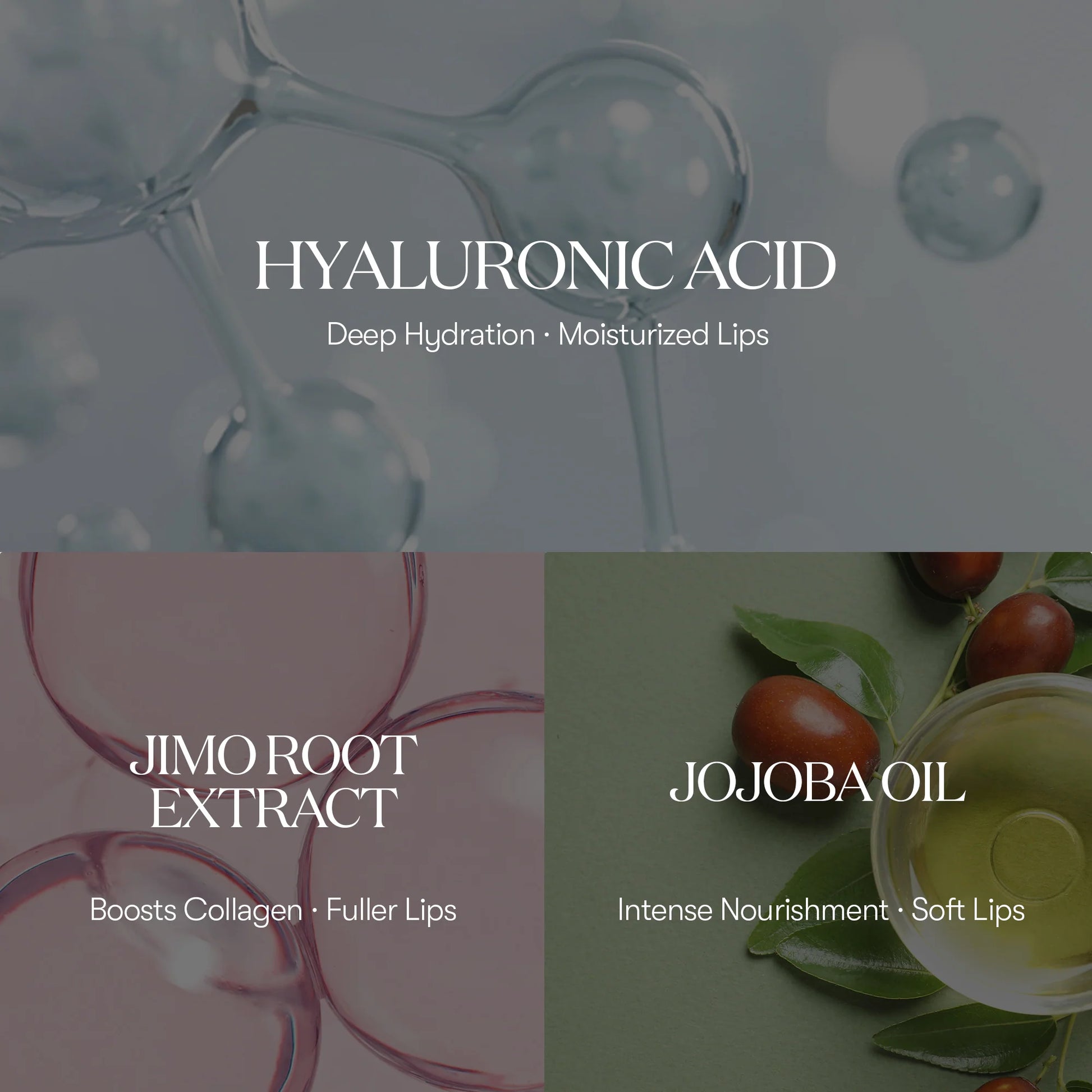 - Βαθιά Ενυδάτωση & Θρέψη: Με Υαλουρονικό Οξύ, Jimo Root και Έλαιο Jojoba, ενυδατώνει και προστατεύει τα χείλη όλη μέρα.